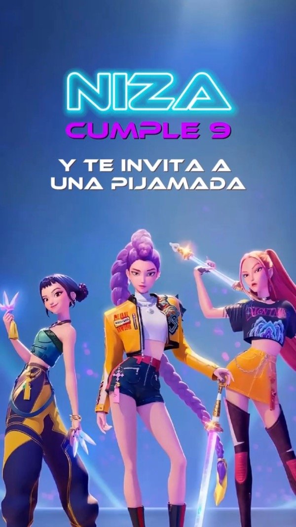 Invitación digital personalizada inspirada en el estilo Guerreras K-pop, ideal para cumpleaños llenos de color, ritmo y diversión 🎶✨